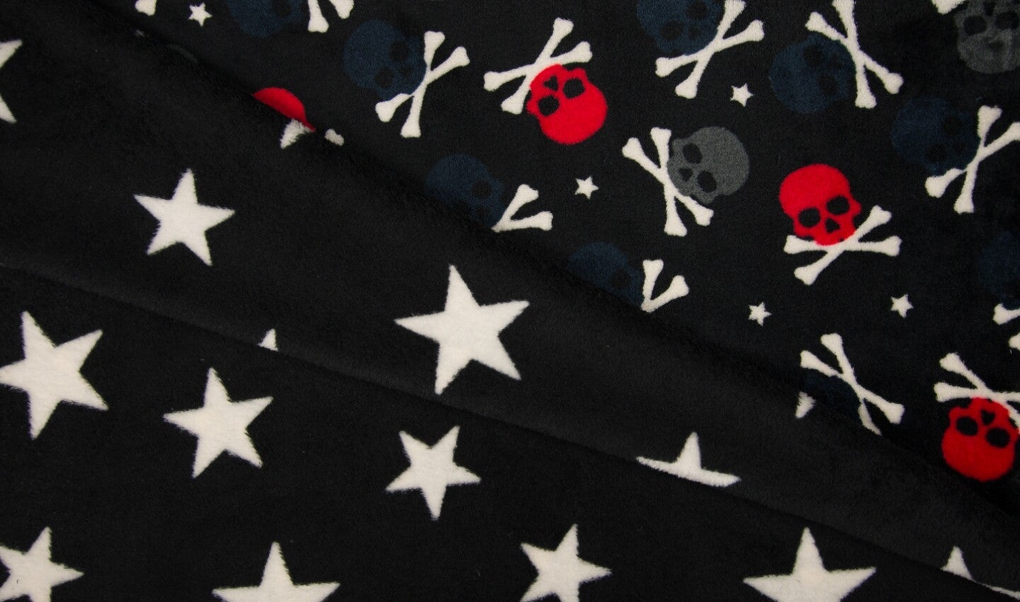Sehr toller Flanell Fleece, auch bekannt als "Wellness Fleece", mit dem Sujet Skull and Stars in der Farbe Black.