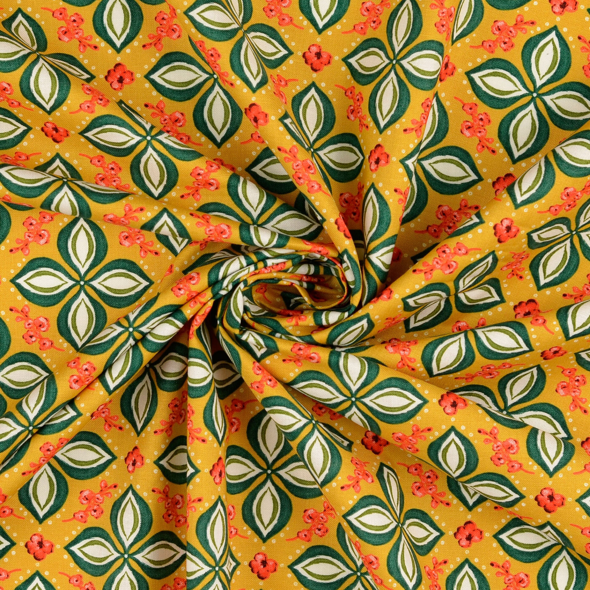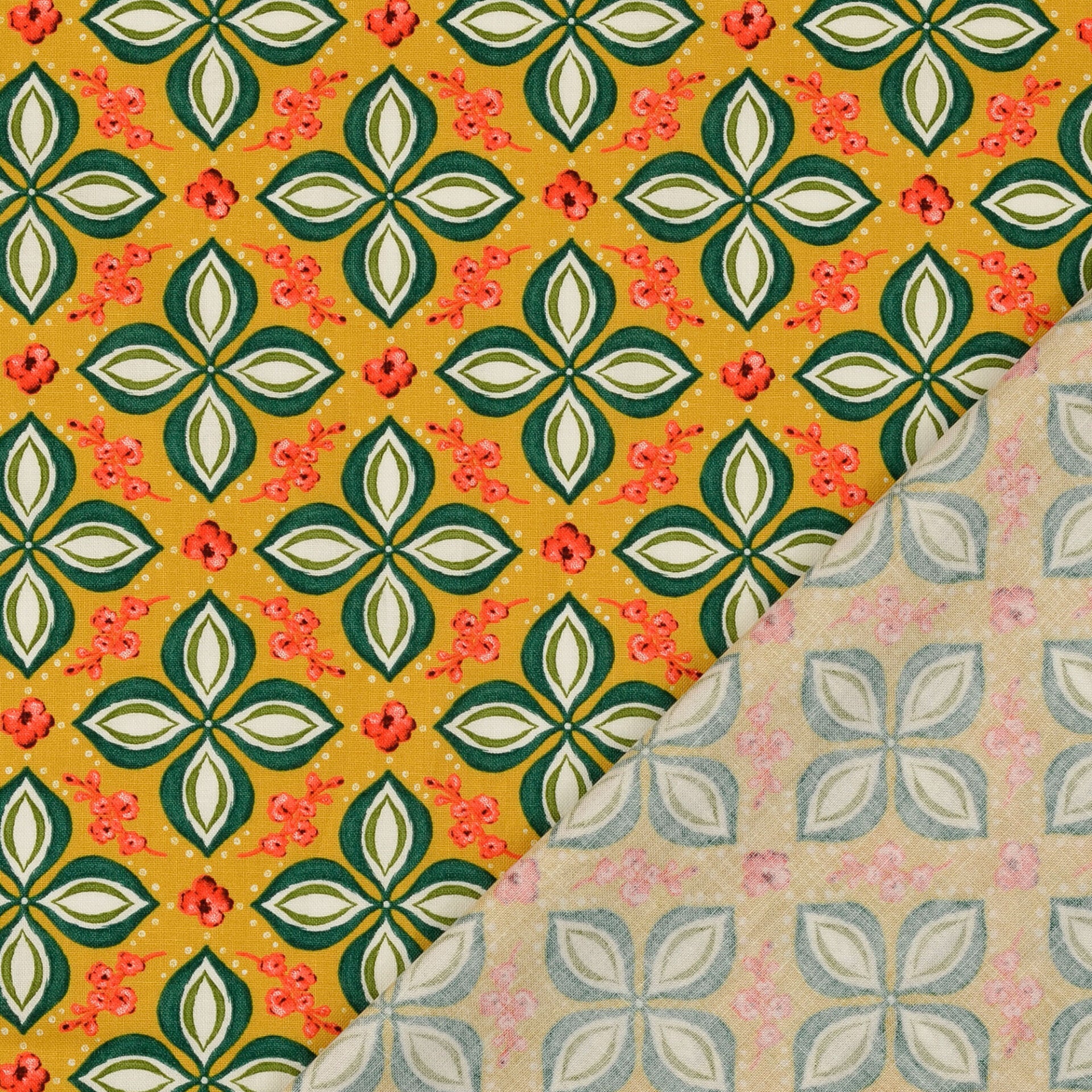 Sehr toller Baumwoll Stoff mit dem Motiv "Blumen Retro" in der Farbe Gelbder sich bestens für alle Näharbeiten eignet.