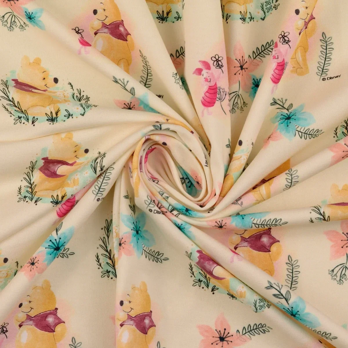 Sehr toller elastischer Baumwoll Elasthan Jersey mit dem Motiv "Winnie Pooh" in der Farbe creme der sich bestens für alle Näharbeiten eignet.