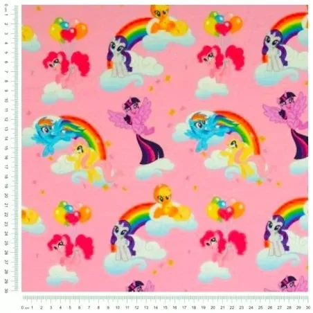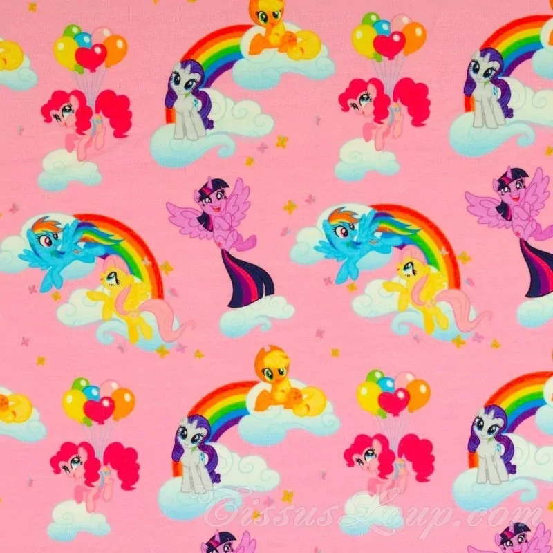 Sehr toller elastischer Baumwoll Elasthan Jersey mit dem Motiv "My little Pony" in der Farbe rosa der sich bestens für alle Näharbeiten eignet.